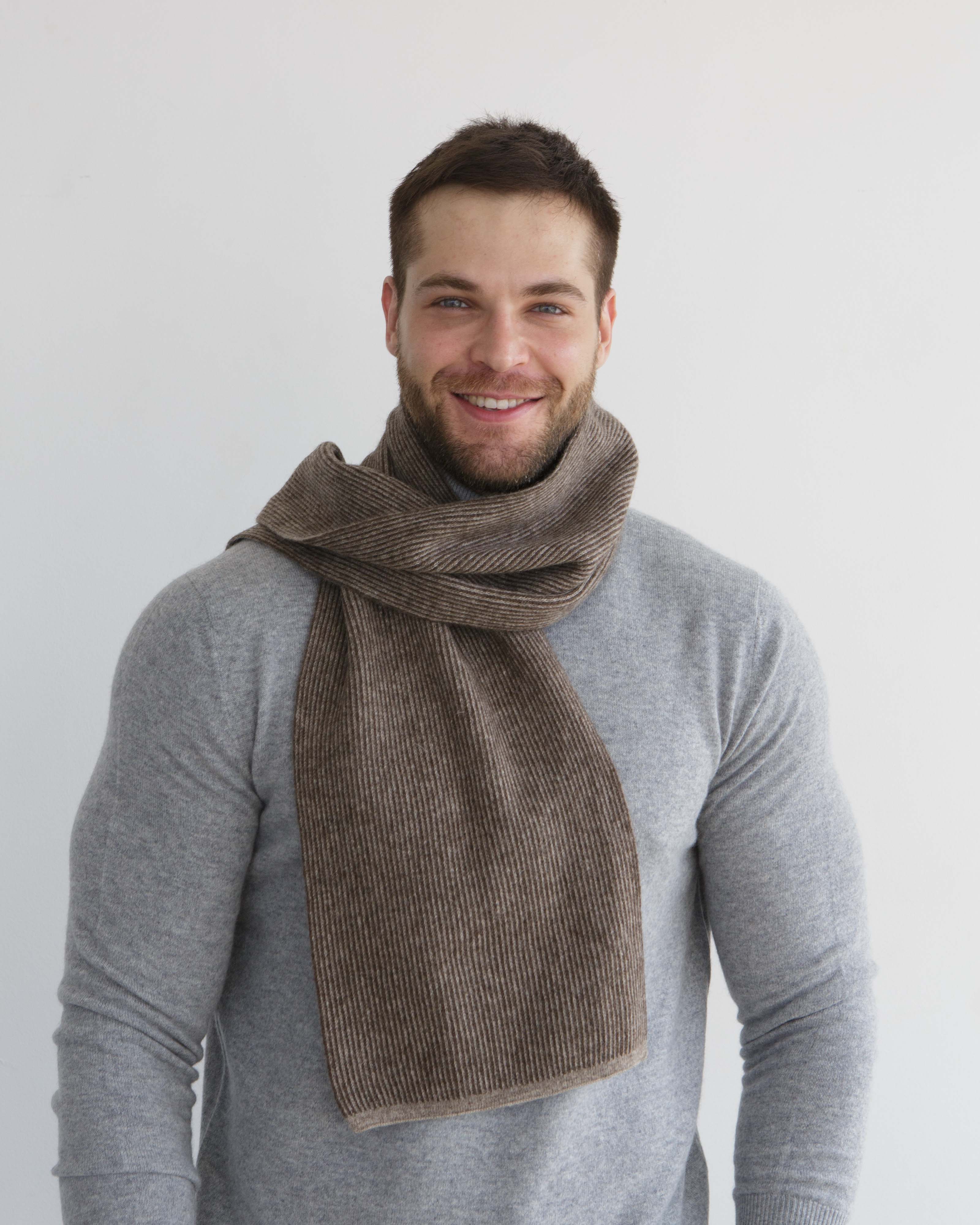 Приобрели шарф для мужчины, чтобы носить его с курткой без воротника.