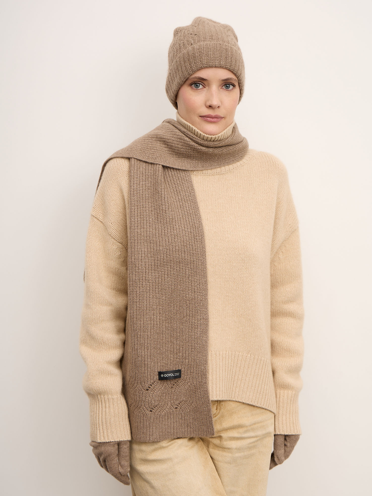 100% натуральный кашемир. Тонкое, мягкое волокно отличается высокой способностью удерживать тепло и при этом позволяет коже дышать. Гипоаллергенный материал подходит для чувствительной кожи и сохраняет первоначальную мягкость и форму при правильном уходе.