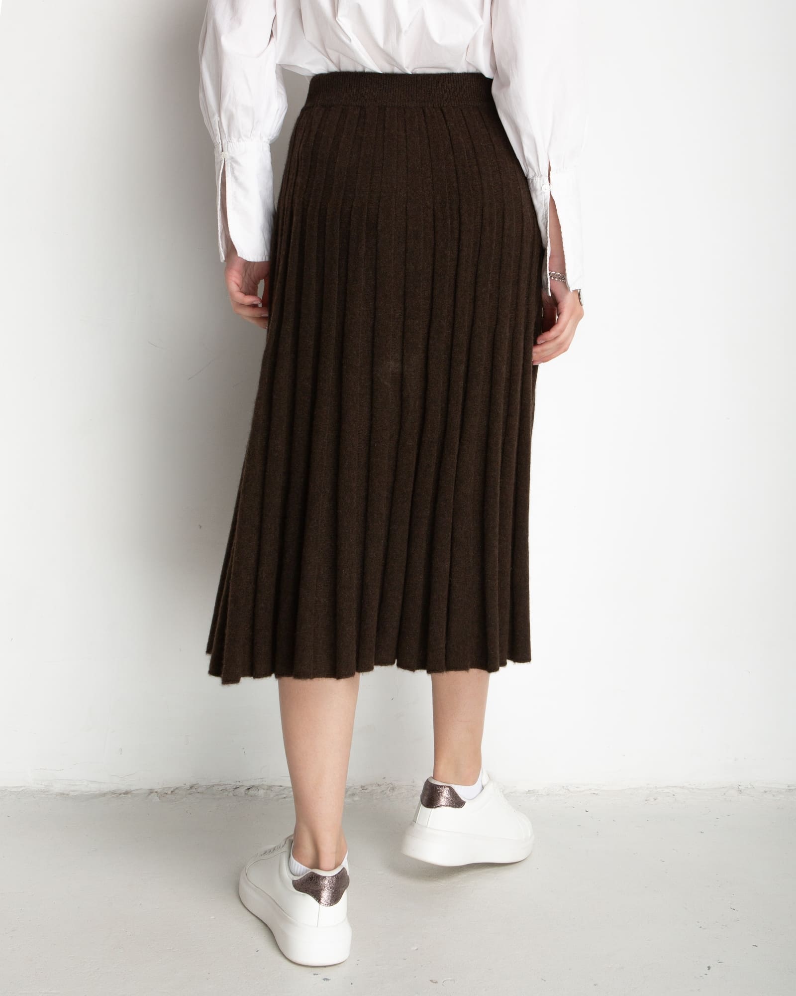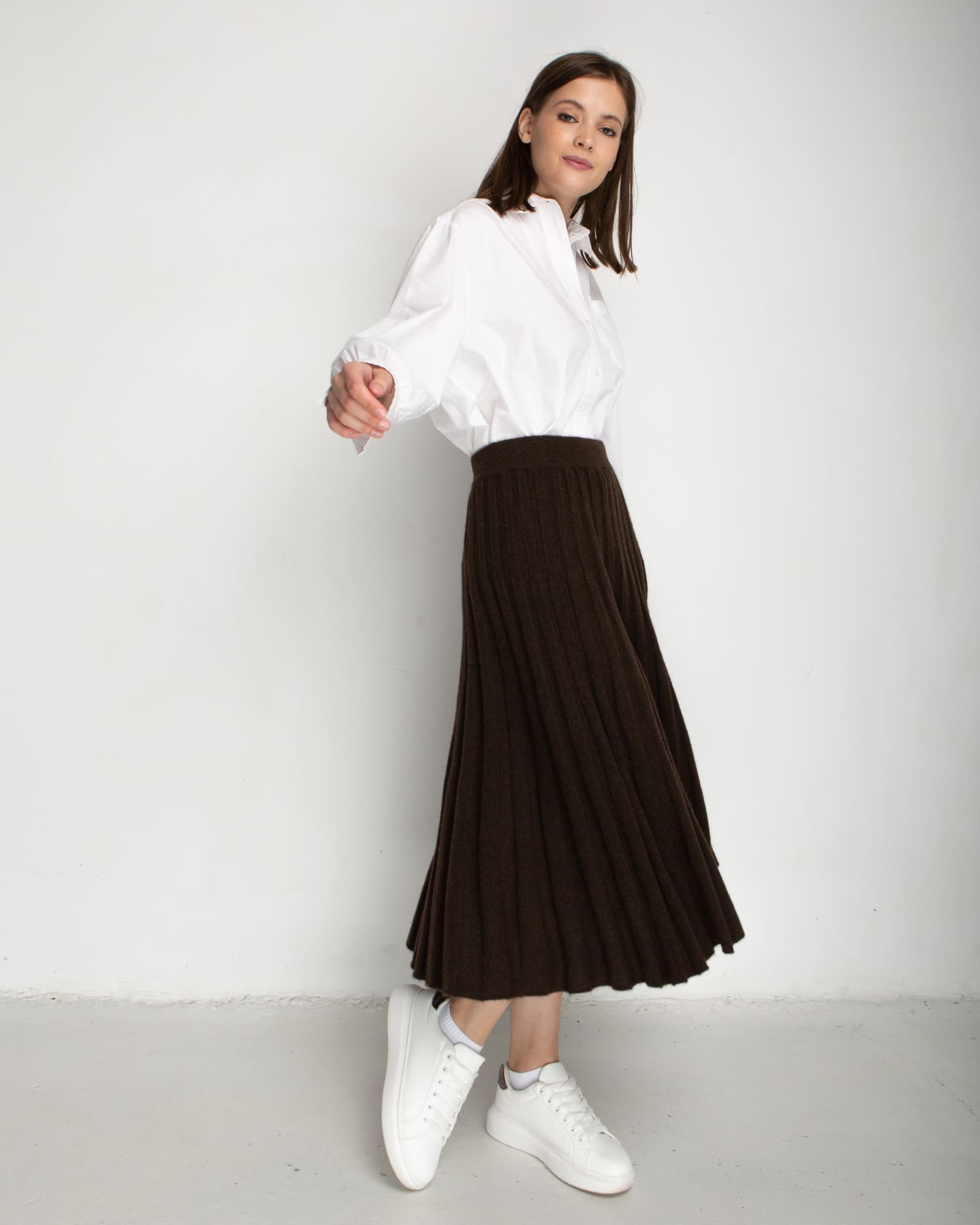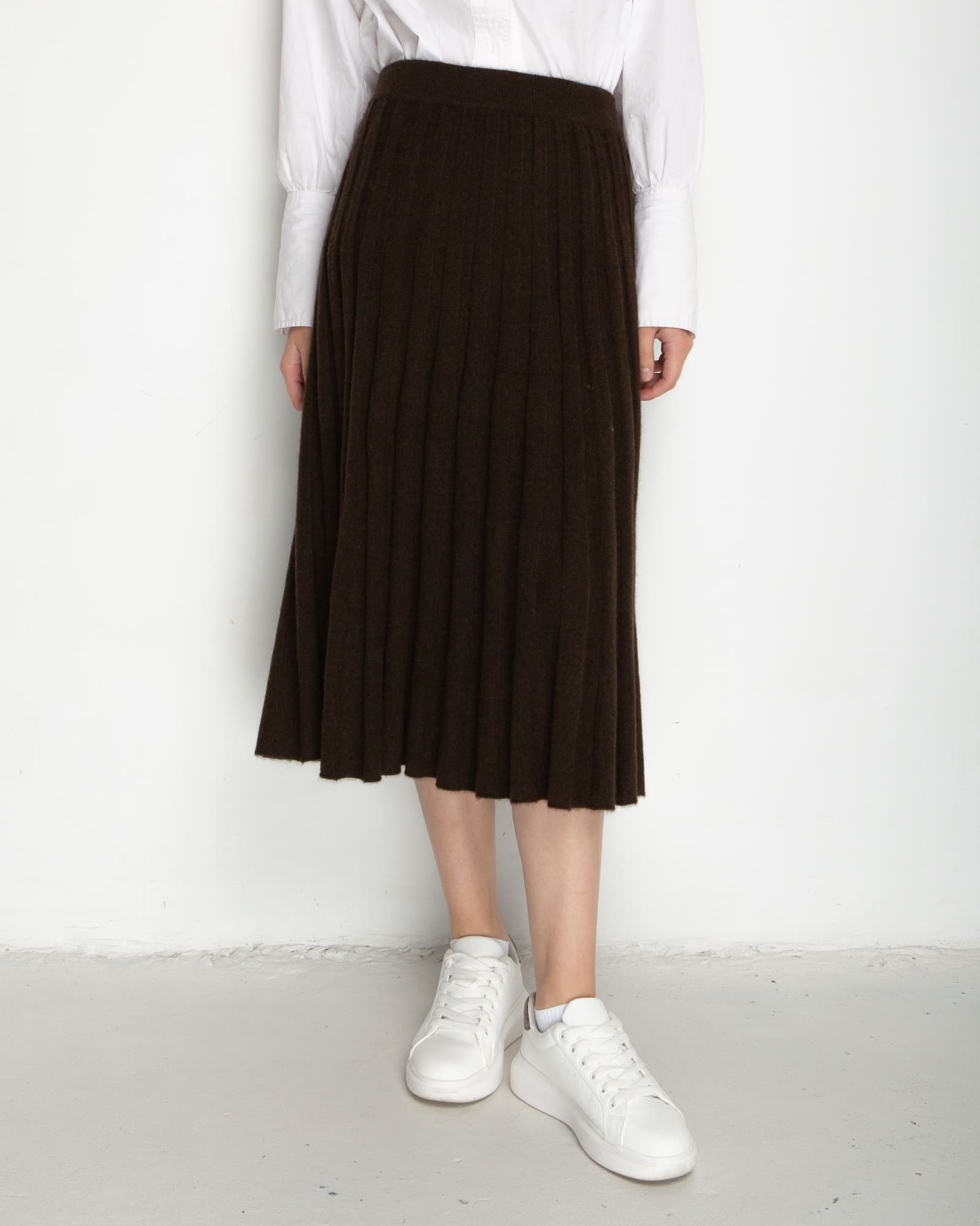 Юбка из пуха яка — элегантная модель с выразительной плиссировкой, создающая лёгкий и динамичный силуэт. Подходит для женственных и современных образов на каждый день.