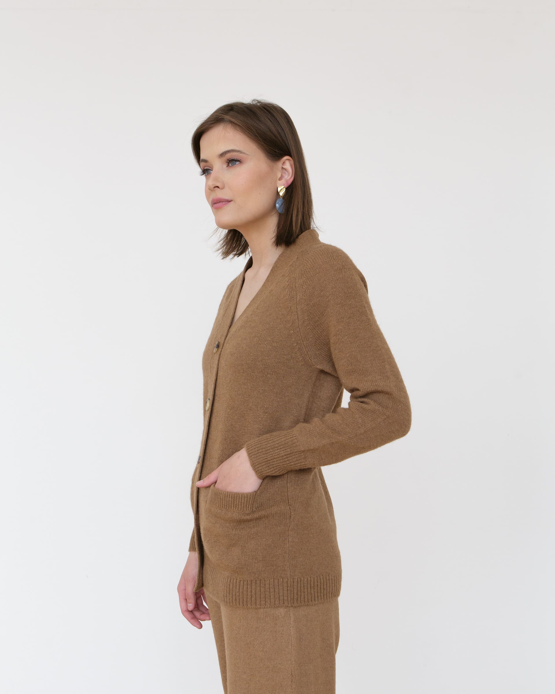 Женский кардиган из шерсти верблюжонка — тёплая и уютная модель с элегантным силуэтом. Натуральный материал и лаконичный дизайн делают изделие универсальным элементом гардероба, идеально подходящим для повседневных и расслабленных образов.