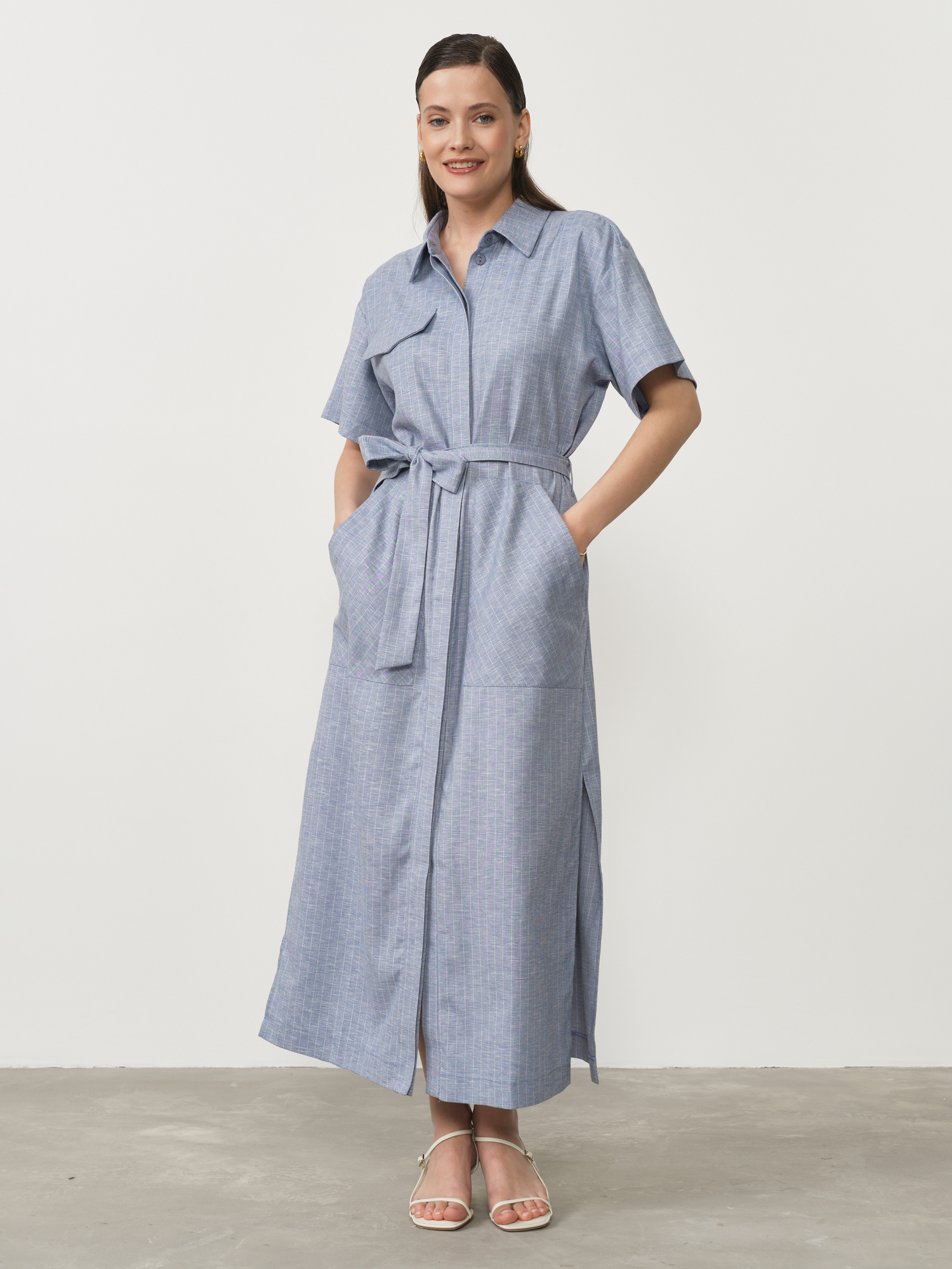 Очень красивое и удобное платье! И карманы и пояс, все к месту. На работу просто чудо. Лен, ткань приятная к телу. Для высоких. |