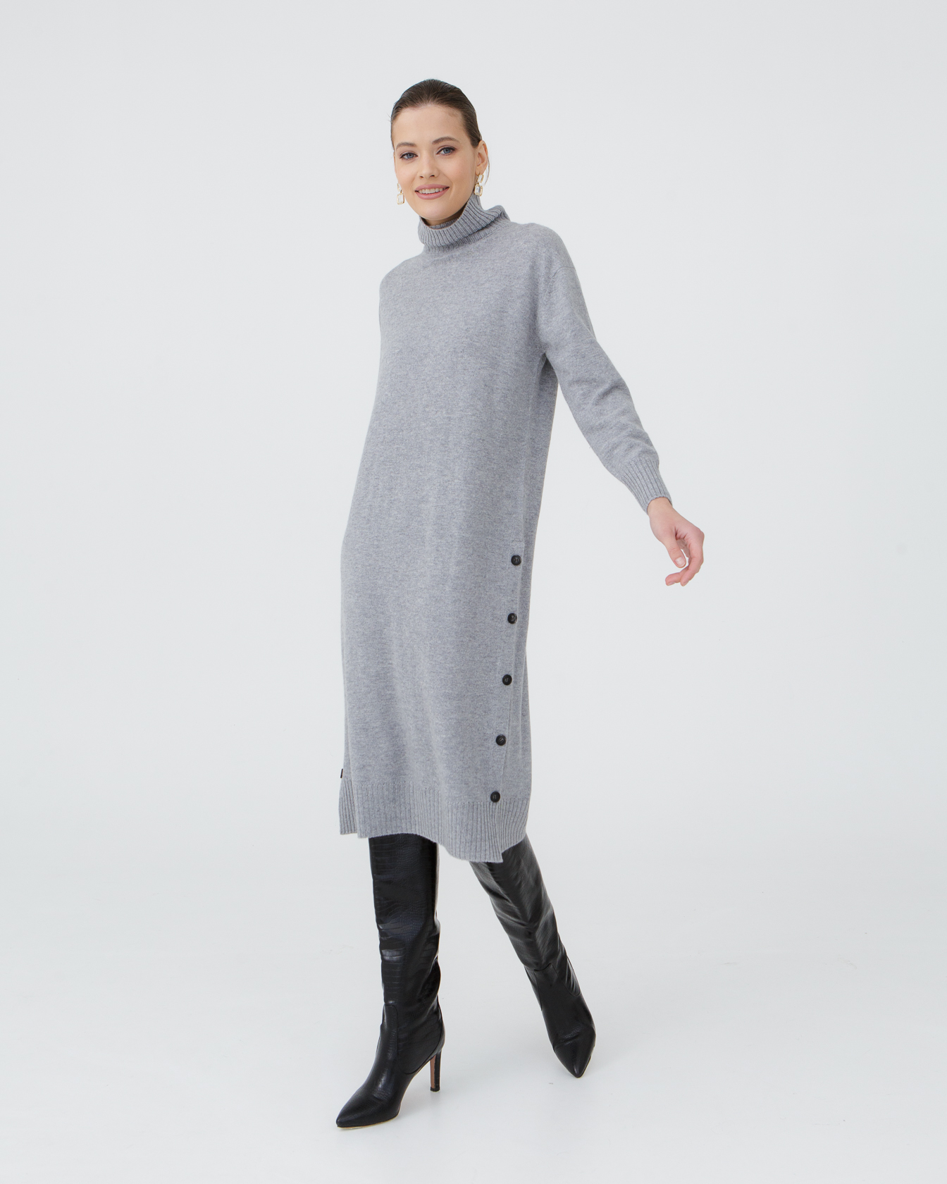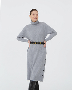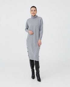 Элегантное кашемировое платье в серо-голубом цвете — воплощение утонченности и комфорта. Высокий воротник защищает от ветра, а длинные рукава и удлиненный крой дарят ощущение уюта и тепла в холодное время года. Мягкий кашемир обеспечивает приятные ощущения на коже, а спокойный оттенок идеально сочетается с любыми аксессуарами. Боковая линия с декоративными пуговицами придает изделию современный и стильный вид. Идеальный выбор для создания изысканного повседневного или делового образа.