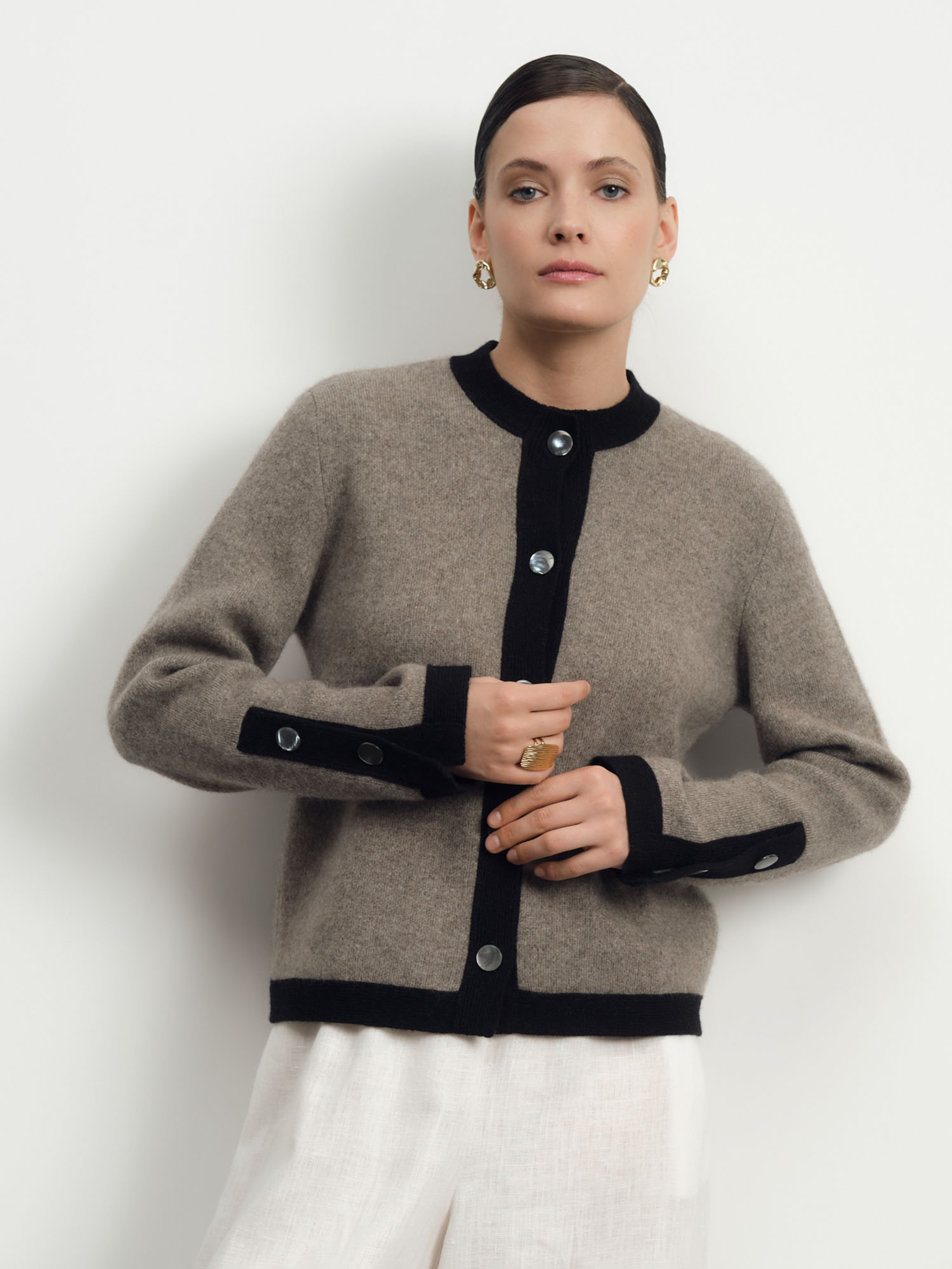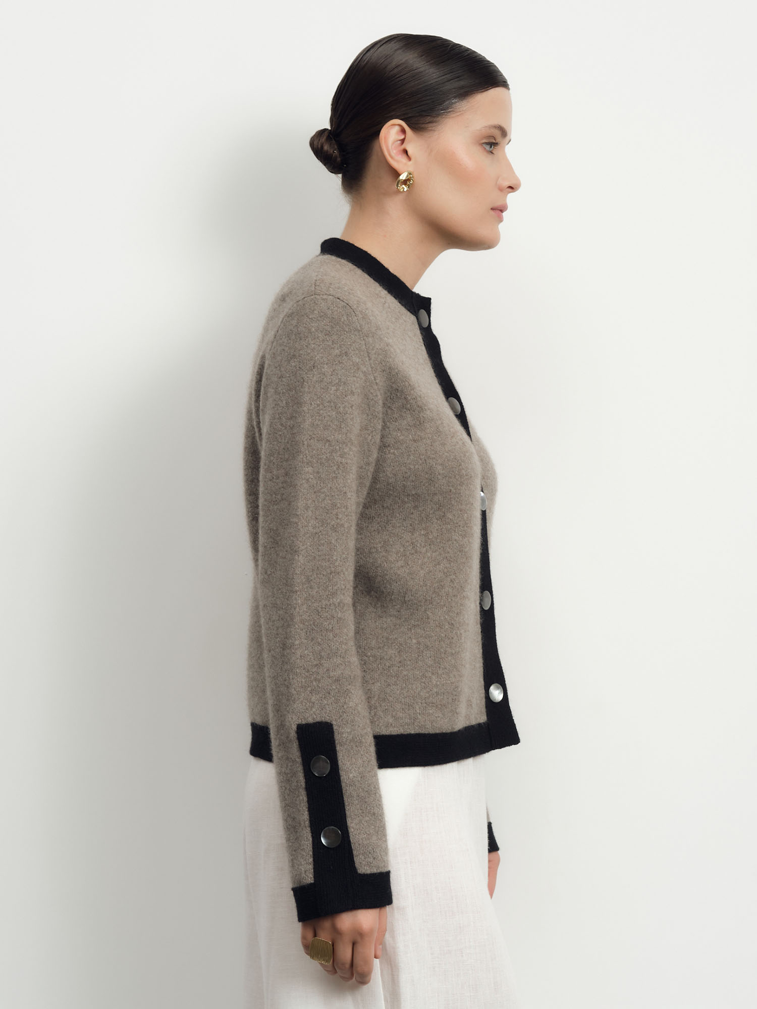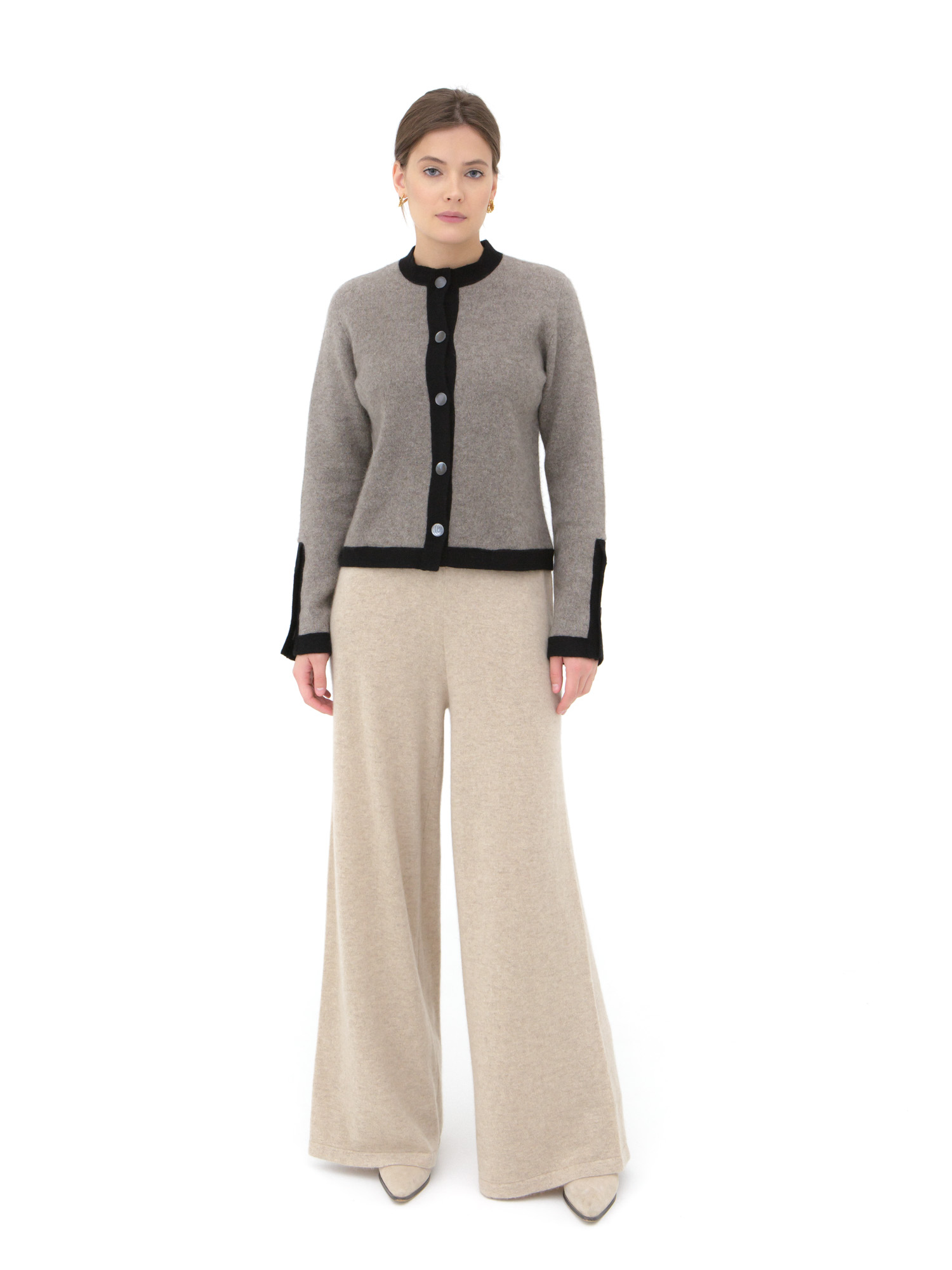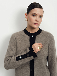 Кардиган из пуха яка — элегантная и уютная модель для повседневного и элегантного гардероба. Натуральный материал отличается мягкостью, легкостью и высокими теплоизоляционными свойствами, обеспечивая комфорт в прохладную погоду.