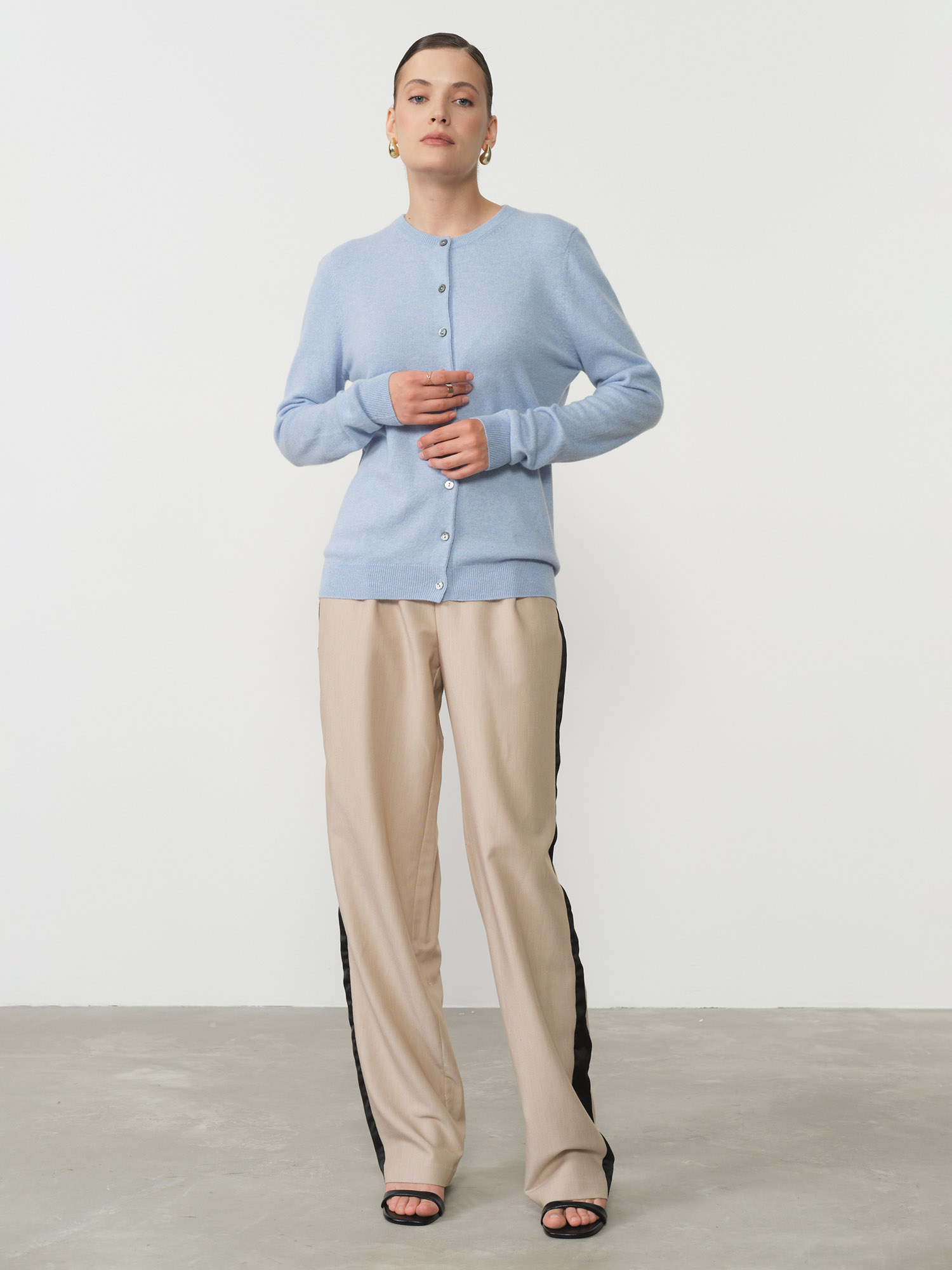 Особая ценность кашемира заключается в его природных терморегулирующих свойствах – он сохраняет тепло в прохладную погоду, но при этом позволяет коже дышать, предотвращая перегрев. Благодаря натуральным гипоаллергенным качествам, кардиган подходит даже для чувствительной кожи.